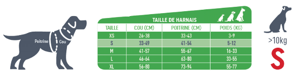 Les harnais tailles XS et S sont conçus en nylon à la place de l’oxford pour mieux s’adapter à la morphologie du chien et rendre le produit plus léger. Un chien ne doit pas porter plus de 20% de son poids.