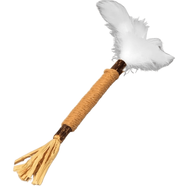 Découvrez le Matatabi Plumes Raphia, un jouet enrichi conçu pour captiver votre chat. Ce jouet est composé d’un bâton de matatabi, orné d’une corde en coton de 3 mm de diamètre enroulée autour, avec des plumes d’oie naturelles d’un côté et du raphia de l’autre, offrant une variété de textures et de stimuli qui stimulent l’instinct de jeu de votre chat.