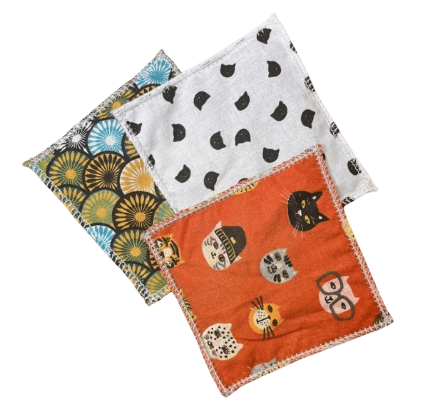 Contenu : 3 coussinets Zen CatDimensions : 8.5 x 8.5 cm env.Composition : Tissu naturel – rembourrage 100 % Matatabi